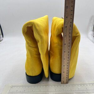 Yellow Suede Pointed Toe Thigh High Block Low Heels Side Zip Over The Knee Boots