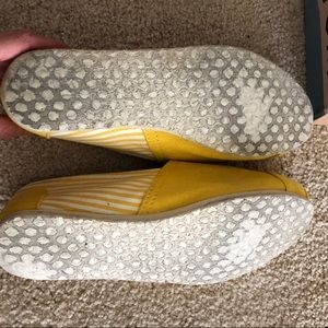Classic canvas TOMS for women. Bright sunflower yellow color with striped sides. Mild wear on bottoms (shown in picture), but only worn once and in great condition