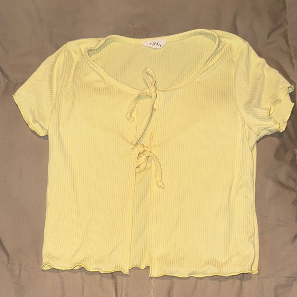 Yellow Tie-Front Ribbed Top