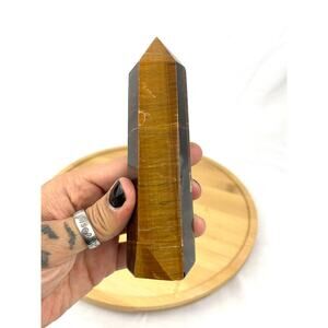 Yellow Tiger Eye Obelisk Crystal 5" Tall Natural Healing Stone Tower 213g