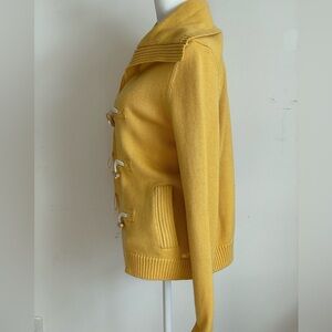 Stay cozy and stylish with this vibrant yellow toggle sweater. Perfect for layering and adding a pop of color to your outfit. Two inseam front pockets. Size small. In like new condition.