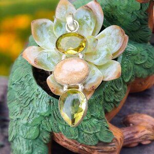 Yellow Topaz ✦ Peach Calcite ✦ Peridot Pendant ✦ Sterling Silver Made In Italy