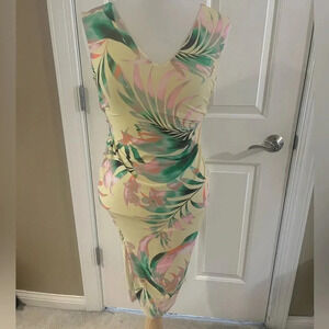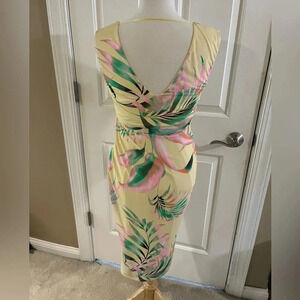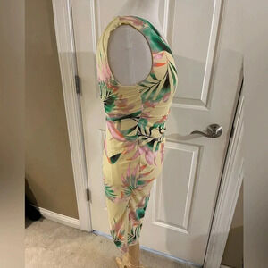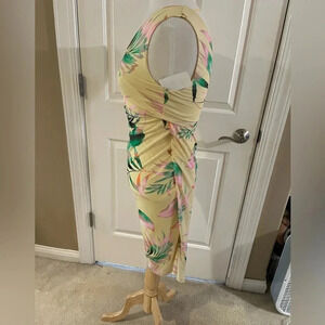 this is a dress that speaks vacation, relaxation, beach vibes night on the town! It has a store tag but does not have brand tag. This is brand new never worn and it is a women’s size medium. This is a mid dress so it hits just below the knees. The colors are like a banana yellow with tropical colors throughout as seen in pictures. All of my items come from a smoke free home and are well cared for. I am open to considerate offers. Thanks for stopping by and looking. Please feel free to check out other items in my closet!
