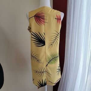 Yellow Tropical Print Sleeveless Sheath Dress Size Large