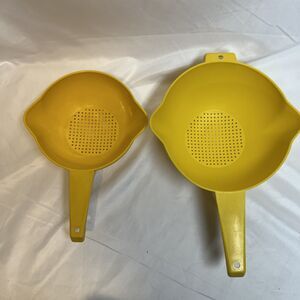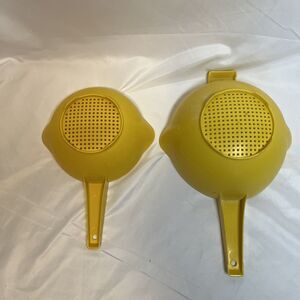 Yellow Tupperware Strainers Colanders 1200 1 Qt 1523 2 Qt Vintage Lot of 2