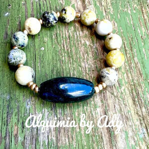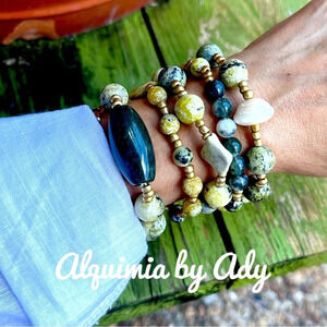 Yellow Turquoise and big green agate beaded bracelet for women/ colorful/ summer