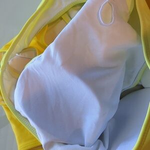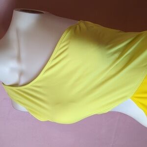 Yellow Two Tone Asymmetrical Cut Out One Shoulder One Piece Swimsuit size XL