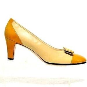 Yellow Two-Tone Leather Bow Pumps 7AA 🇮🇹