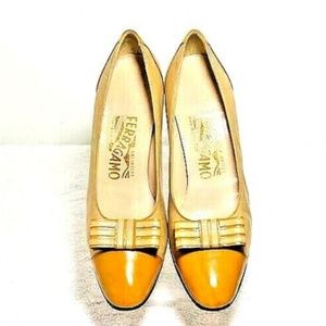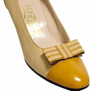 Salvatore Ferragamo Mustard Yellow Two-Tone Leather Bow Pumps – Size 7N