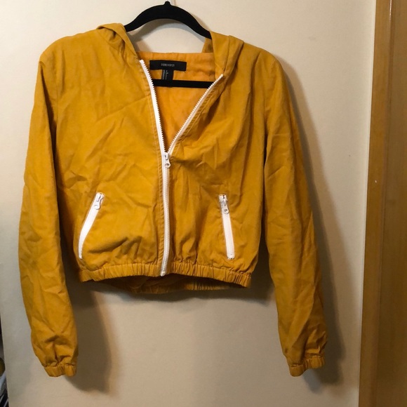 Yellow F21 jacket with white zippers