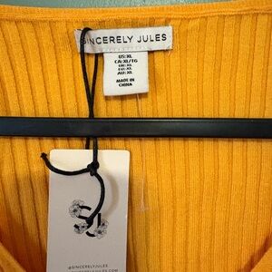 Elevate your style with this vibrant yellow ribbed top. Features a chic V-neck and long sleeves. Perfect for casual outings. Super stretchy. Approximate measurements. Length- 18”. Pit to pit-17”