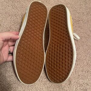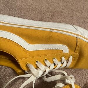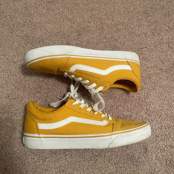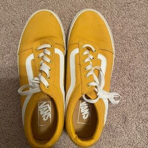 Yellow Vans Sneakers. All sales final. Used but still in good condition with some slight staining but nothing major. Super comfortable. I wear a women’s 10/10.5 and they fit me comfortably