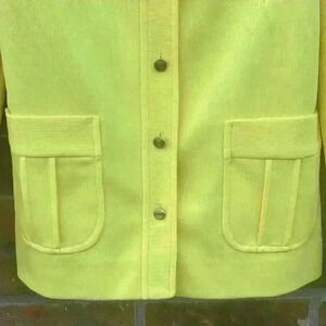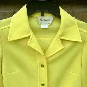 Yellow Vintage 60/70s Polyester Jacket Gold Buttons Pockets Retro