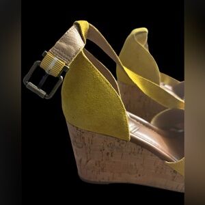 Step out in style with these vibrant yellow wedge sandals. Perfect for adding a pop of color to any outfit.