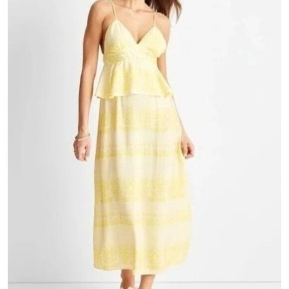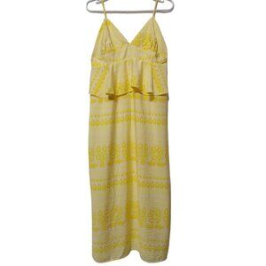 Yellow & White Sleeveless Summer Dress With Floral Pattern, Adjustable Straps.