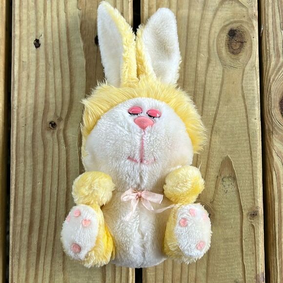 Yellow White Sleepy Bunny Rabbit Plush 11” Stuffed Animal