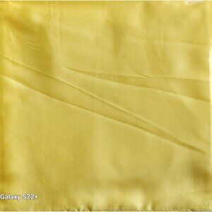 This colorful lemon-yellow satin scarf, crafted from silk and polyester, offers versatile styling. Its smooth texture enhances western attire, pairing seamlessly with hats and boots. Head or neck scarf.