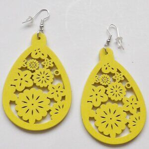 Yellow Wood Cut Out Bohemian Style Dangle Earrings NEW