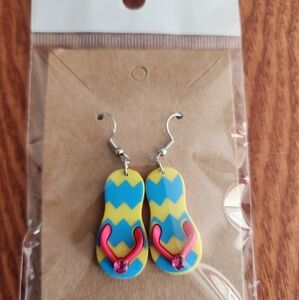 Yellow and Blue Flip Flop Stainless Steel Fishhook Earrings