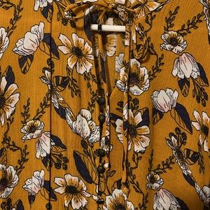 Dress by xhileration. Yellow and floral. Flare sleeves.