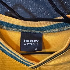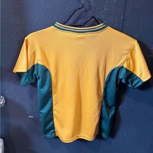 This vibrant jersey features a striking yellow and green color scheme, ideal for sports enthusiasts. Made from high-performance fabric, it includes a v-neck collar and short sleeves for optimal comfort. The design proudly displays 'AUSTRALIA' and the national emblem, embodying team spirit.