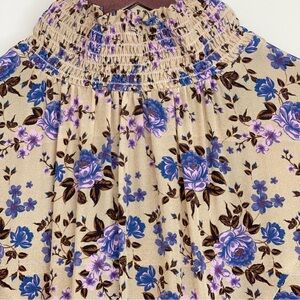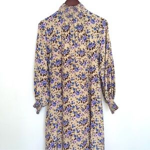 Yellow and Purple Ruffled Tiered Midi Dress with Mock Neck