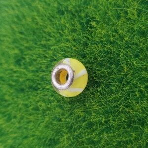Bright yellow bead charm with silver accents. Perfect for bracelets.