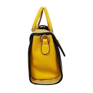 Yellow and Tan Two-Tone Cross Body Purse With Golden Accents, Adjustable Strap