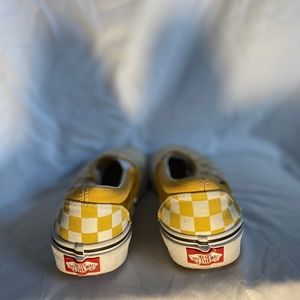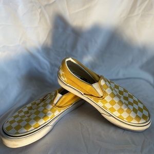 yellow and white slip on checkered Vans, Women's size 5.5 (mens size 4),good condition, no rips, no stains, some dirt smudges on rubber bottom