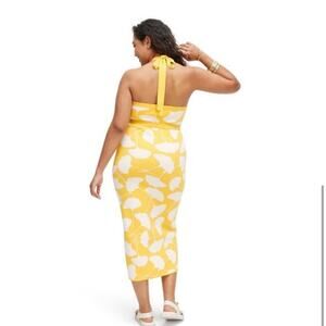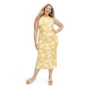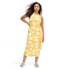 DVF for Target Stylish yellow and white halter dress with a floral pattern. Perfect for summer outings.