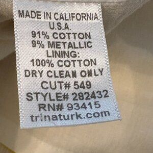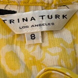 Yellow and White Metallic Print Babydoll Style Mini Dress by Trina Turk, Size 8