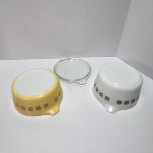 Yellow and White Pyrex Casserole Dishes 1.5 PT- 1QT Town and Country Vintage 70s
