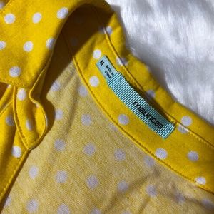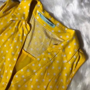 Front has yellow and white spots and the back is mostly mesh. Super cute but only worn once.