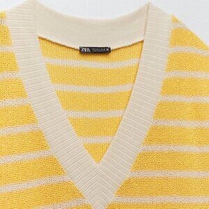Yellow and White Striped Zara V-Neck Sleeveless Knit Sweater (NWT)