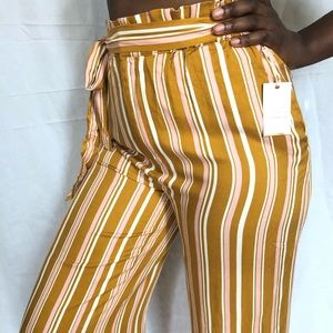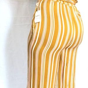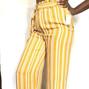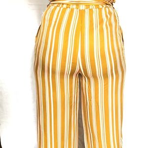 Yellow and White Stripped Flowy Tie Up Pant Size M