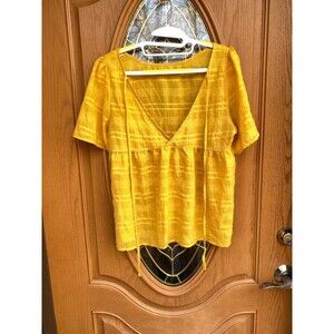 Yellow babydoll v-neck ties top cotton blend size M boho gypsy summer Size M