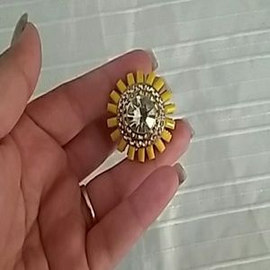 Yellow ball earrings w/individual stones around (never worn) yellow stretch flower ring w/ clear rhinestone in middle & small yellow and clear ones around.