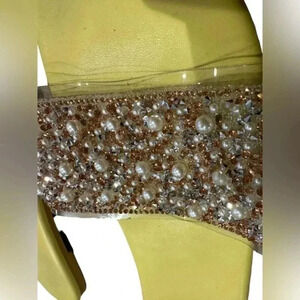Yellow beaded embellished flip flop slides women’s shoes size 39 EU 8.5 US