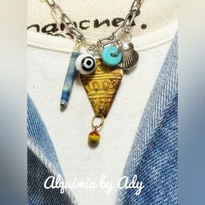 Yellow big fish charm turquoise necklace