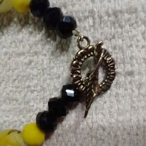 Yellow black white toggle bracelet earrings set
