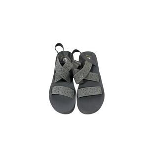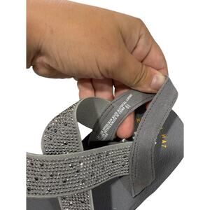 Yellow box Light Gray Grey Rhinestone Strappy Platform Sandals Women’s Size 8.5