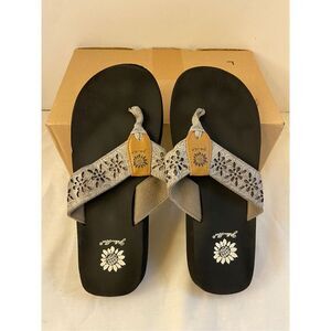 Yellow box size 9 flip flops gray straps
