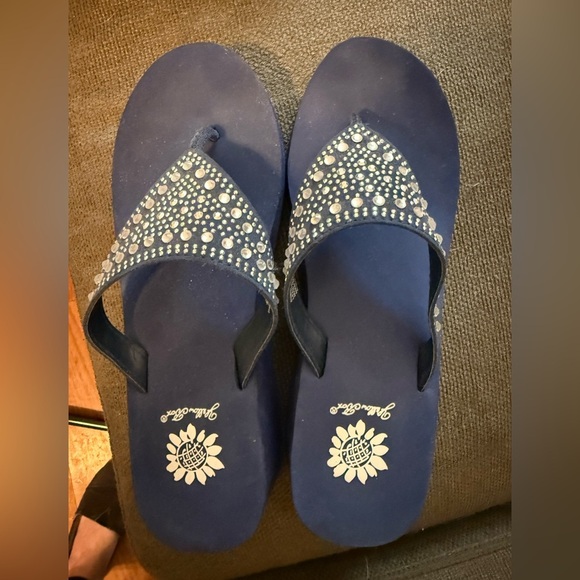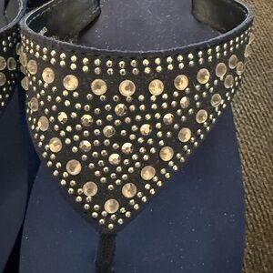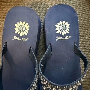 Yellow box woman’s 7.5 elta wedge sandals navy with rhinestones