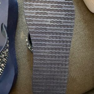 New never worn, excellent condition. Very rare sandals. Silver rhinestones with navy blue jewels. Comes from smoke free home.