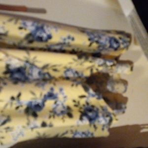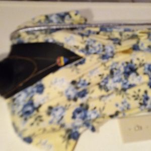 Vintage floral cotton knit dress in yellow with blue flowers. Flattering fit with a self tie. Machine washable
