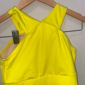This 2 piece set comes with a yellow top that has a cute cut out detail in front and matching fringe dance shorts. It’s comfortable and sassy. Bright and sure to stand out! Child medium Balera.