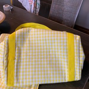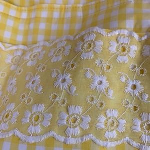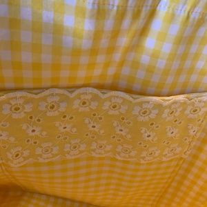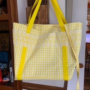 Yellow gingham and lace tote bag with small case . I think it was made by hand