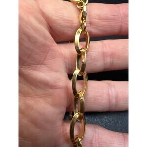 18k yellow gold plated over bronze chain link chunky bracelet with lobster claw clasp measuring about 8 inches and a total weight of just under 15 grams.
