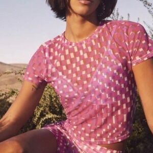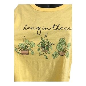 Cantaloupe Yellow green plants and herbs 'hang in there' graphic print short sleeve tee shirt size small brand new