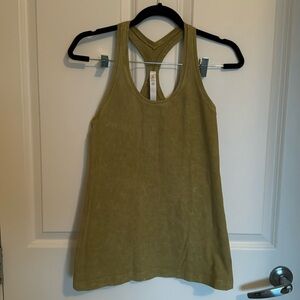 Mustard, yellow/green color stretch razorback by Lululemon in size 8. Fits true to size with stretch. Excellent condition. Smoke-free home.